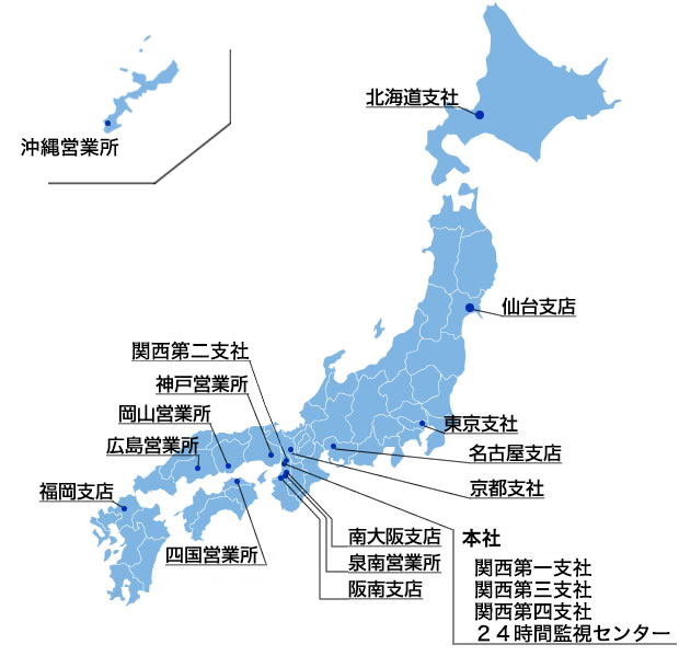 24時間365日、最寄りの拠点から迅速にお客様のもとへ駆けつけます。